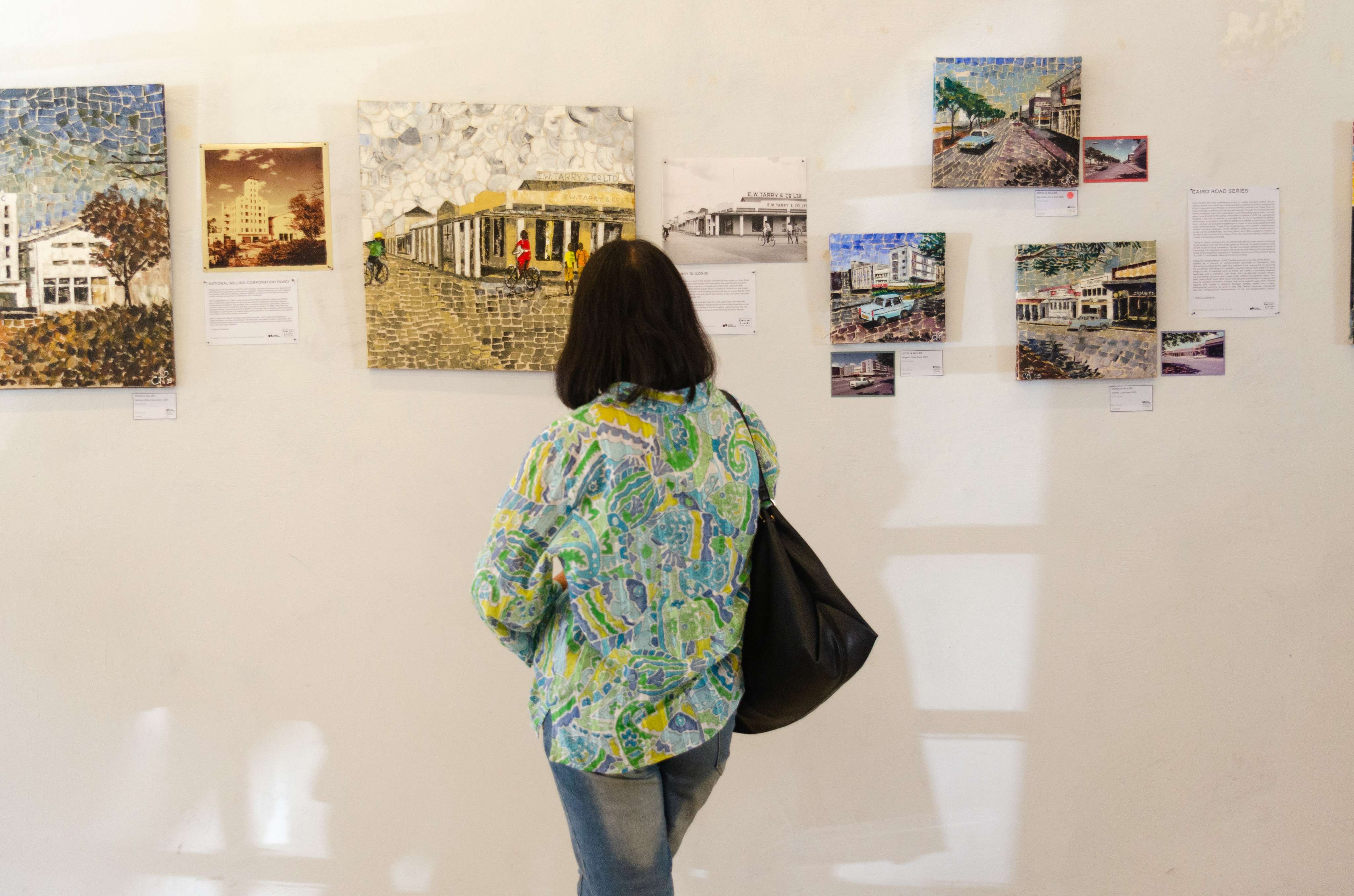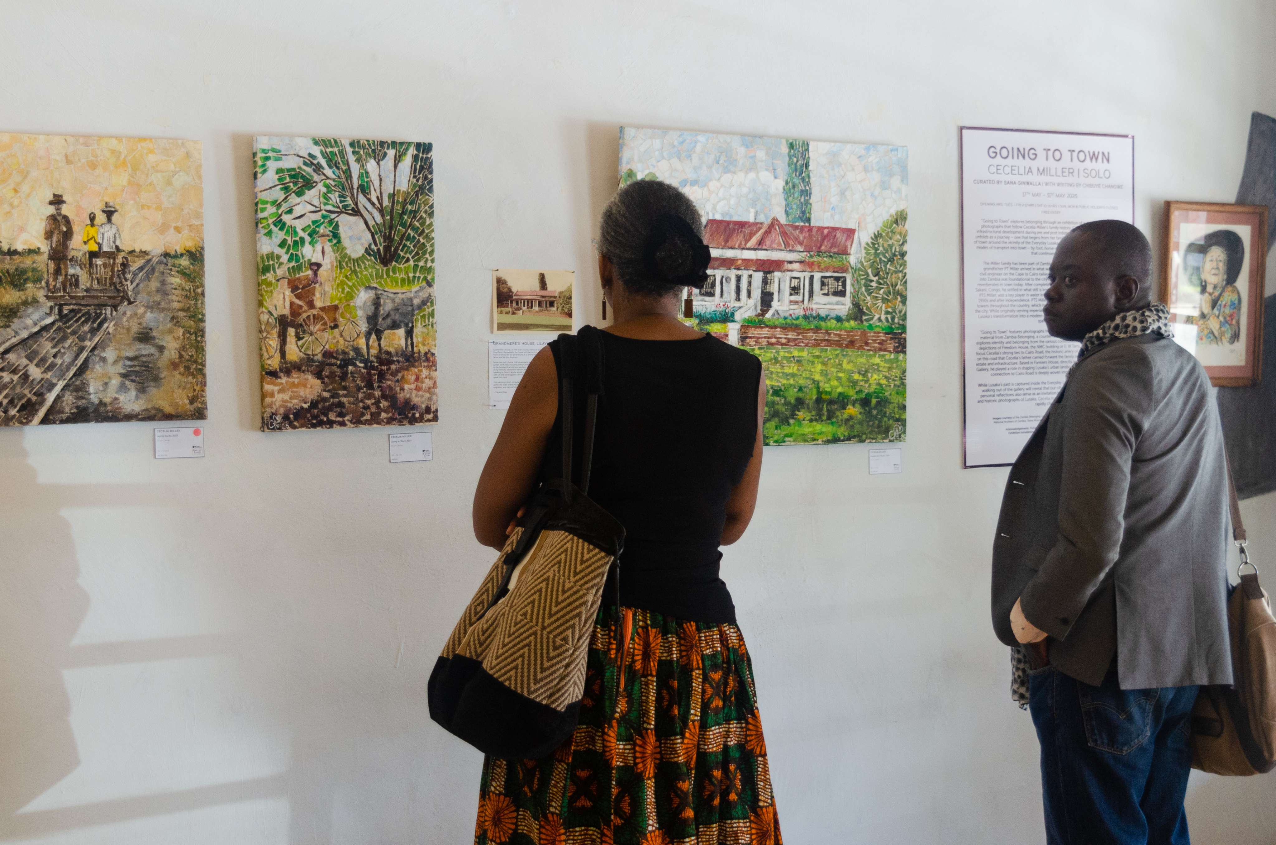 “Going to Town” explores belonging through an exhibition of paintings and archival photographs that follow Cecelia Miller’s family history. Closely tied to Lusaka’s early infrastructural development during preand post-independent Zambia, Cecelia’s narrative unfolds as a journey – one that begins from her family home in Lilayi and ends in the heart of town around the vicinity of the Everyday Lusaka Gallery. Cecelia traces various routes and modes of transport into town – by foot, horse-cart, rail, bike or car – through a cityscape that continues to evolve.