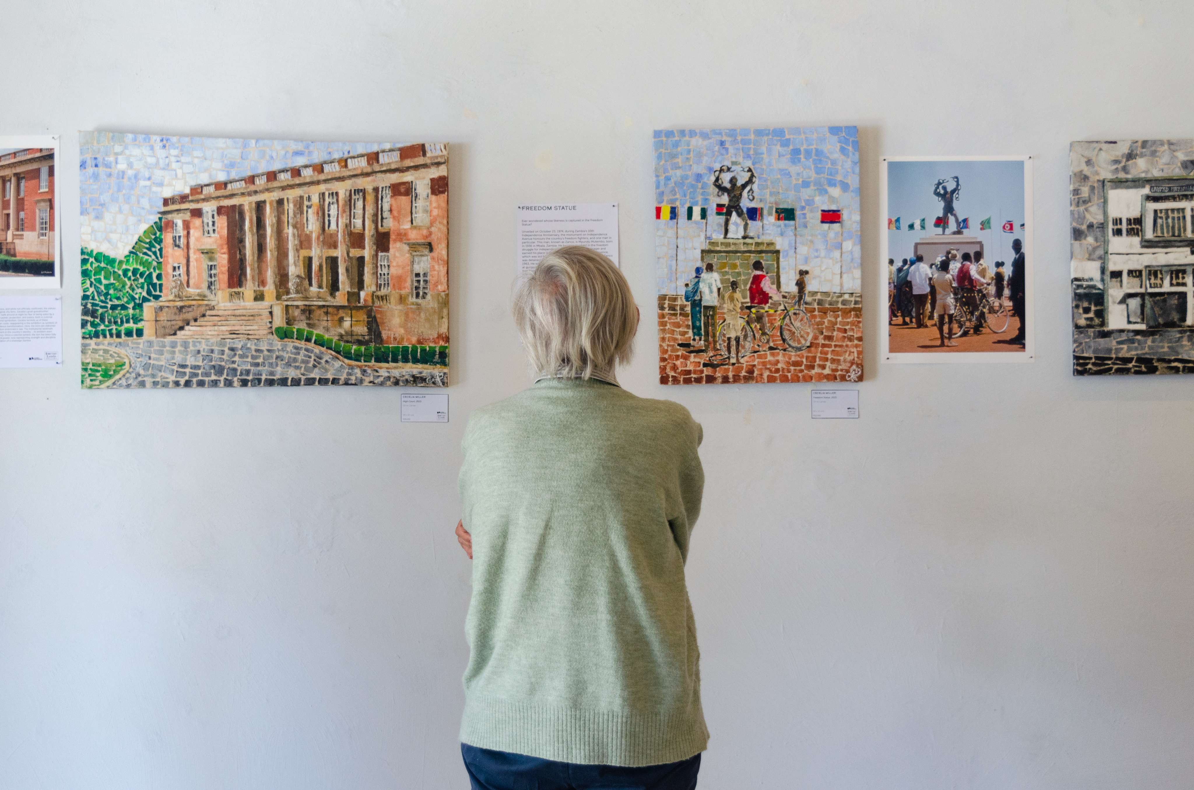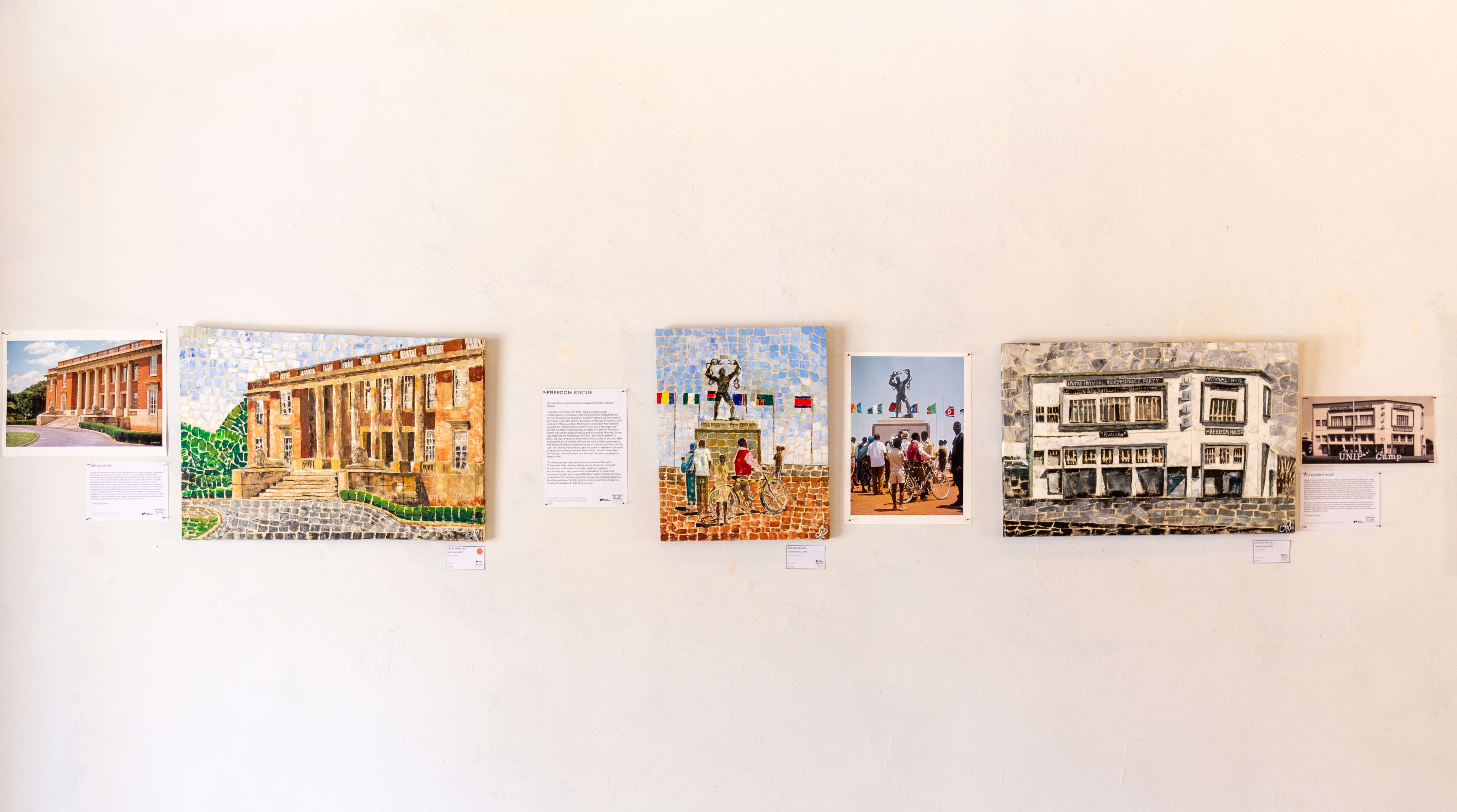 “Going to Town” explores belonging through an exhibition of paintings and archival photographs that follow Cecelia Miller’s family history. Closely tied to Lusaka’s early infrastructural development during preand post-independent Zambia, Cecelia’s narrative unfolds as a journey – one that begins from her family home in Lilayi and ends in the heart of town around the vicinity of the Everyday Lusaka Gallery. Cecelia traces various routes and modes of transport into town – by foot, horse-cart, rail, bike or car – through a cityscape that continues to evolve.